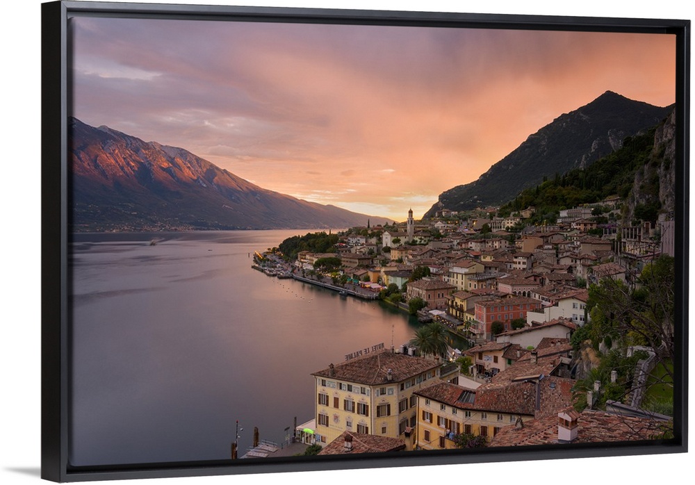 <p>Limone sul Garda at sunset, Garda lake, Brescia province, Lombardy district, Italy, Europe.</p>