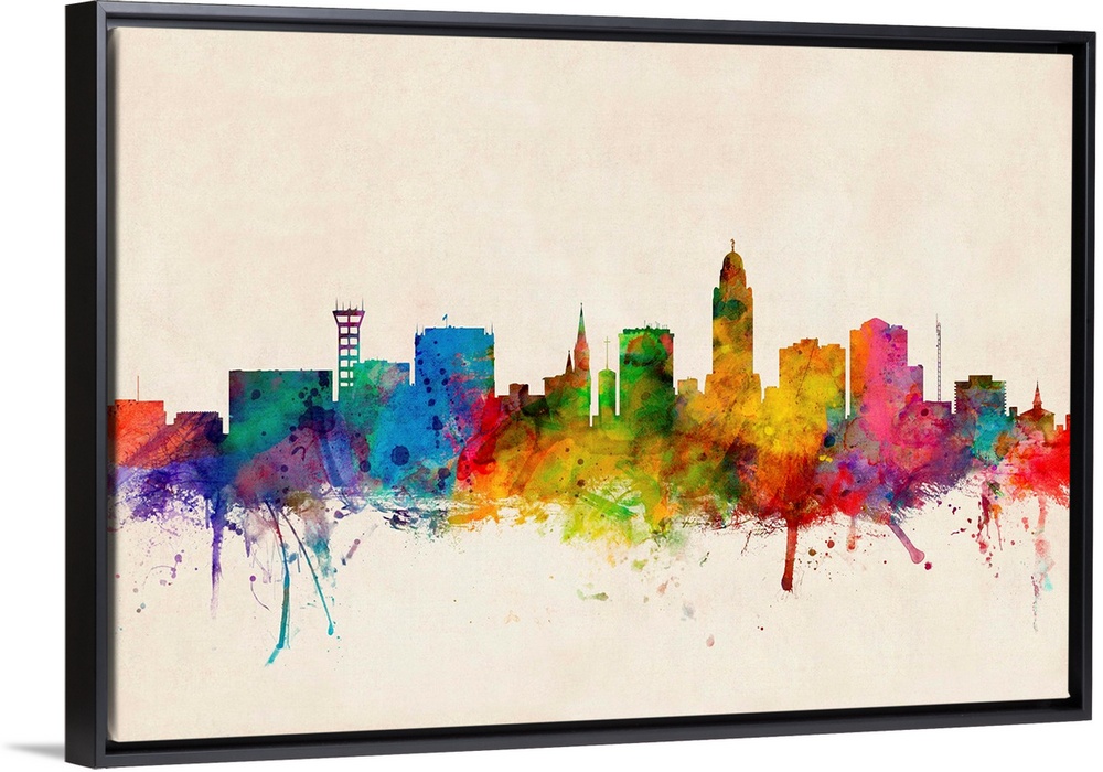 <p>Contemporary piece of artwork of the Lincoln skyline made of colorful paint splashes.</p>