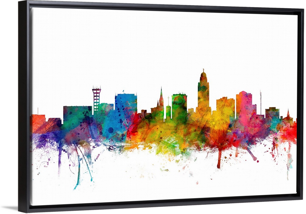 <p>Watercolor artwork of the Lincoln skyline against a white background.</p>
