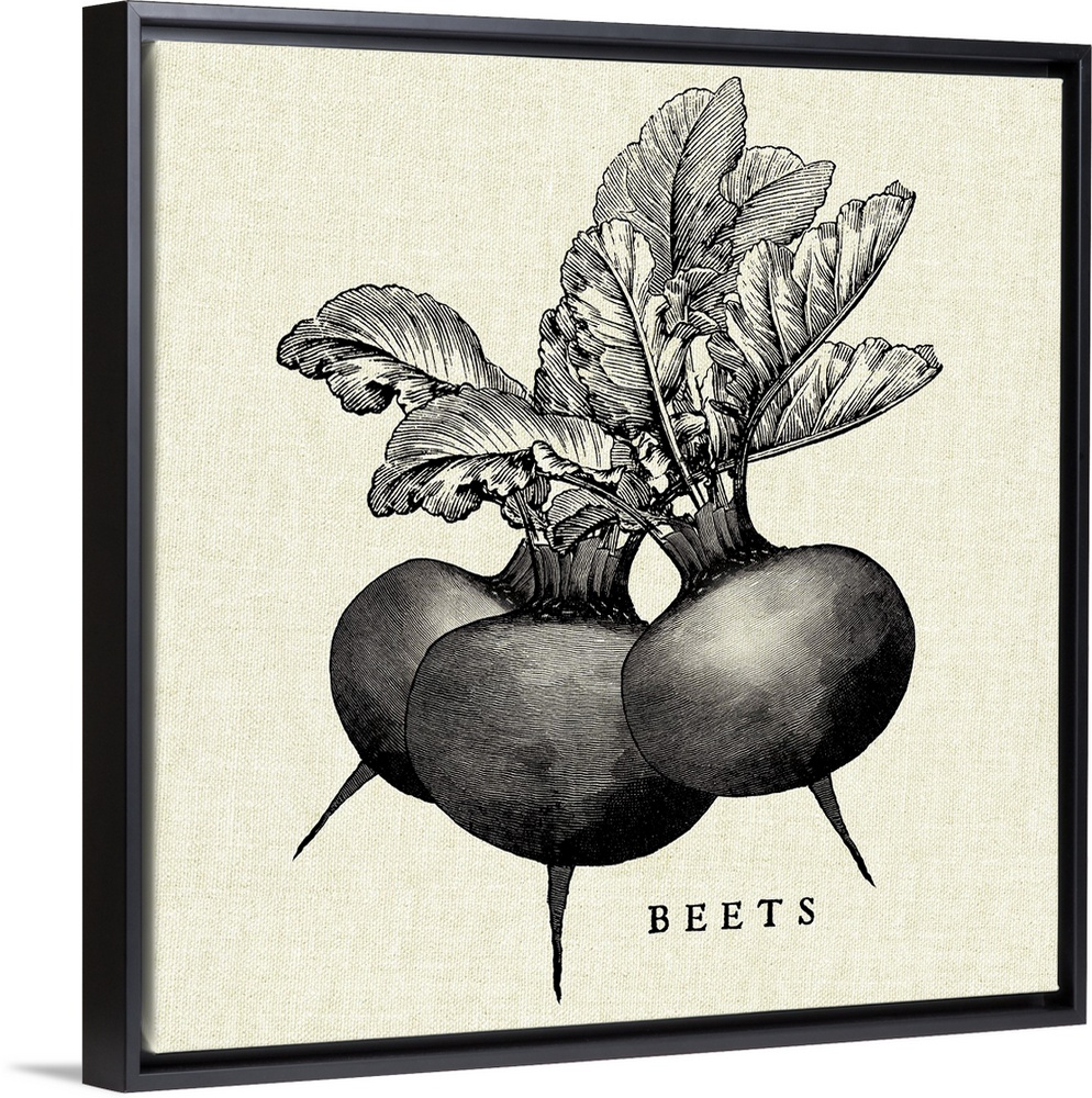 <p>Black and white illustration of beets on a rustic linen background.</p>