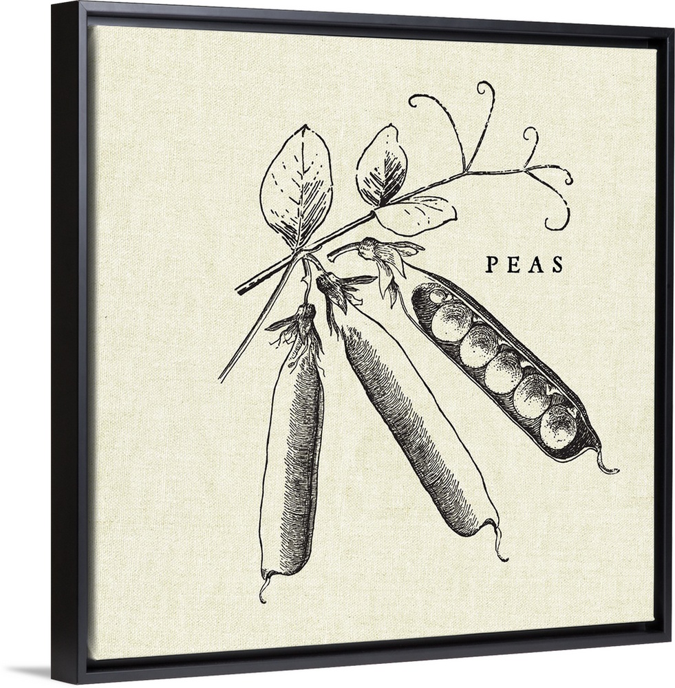 <p>Black and white illustration of peas in pods on a rustic linen background.</p>