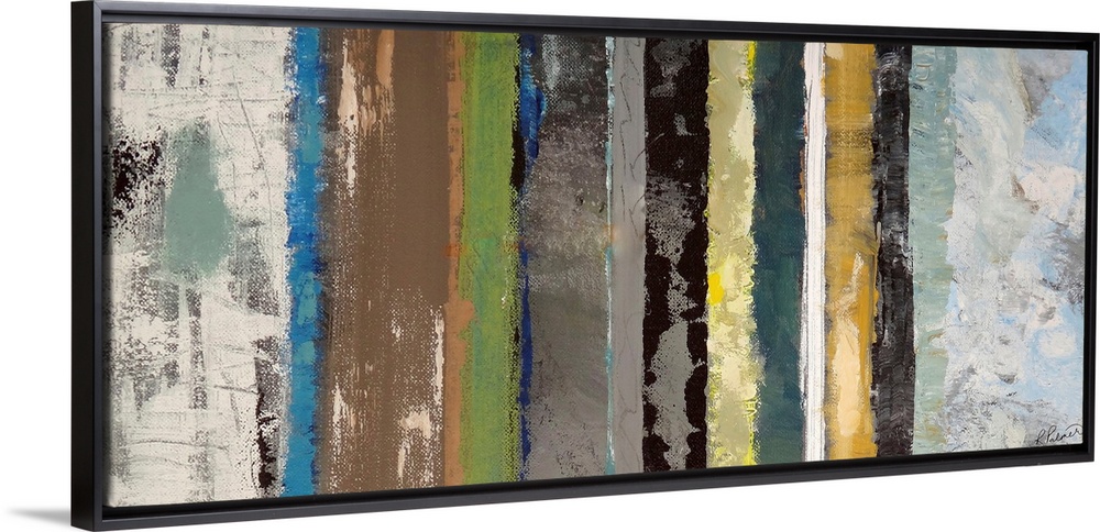 <p>Grunge contemporary art featuring varying vertical lines of colors with a distressed look.</p>