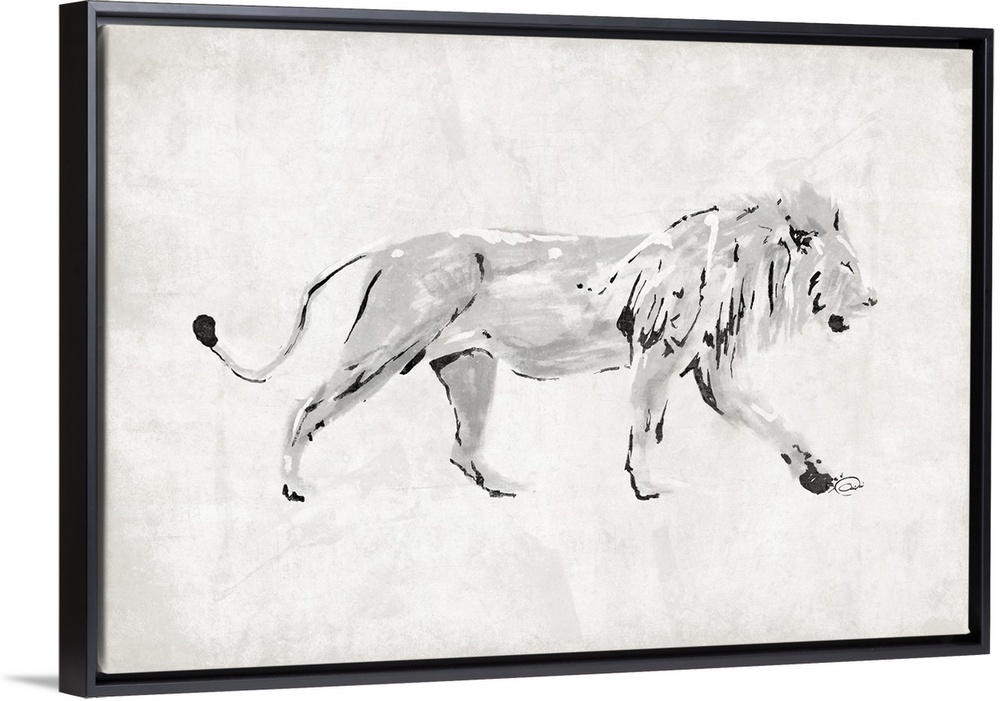 <p>Contemporary piece of artwork with lion facing the right side of the image.</p>