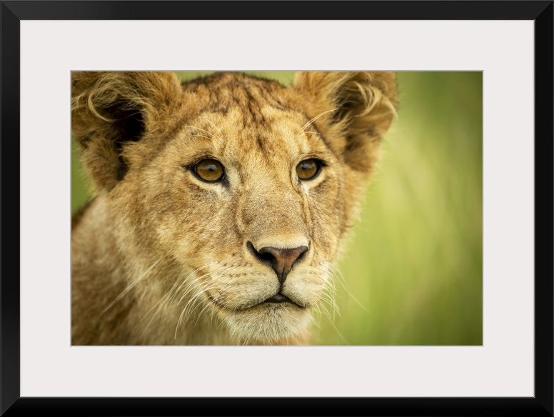 <p>Close-up of lion cub (Panthera leo) head and shoulders, Grumeti Serengeti Tented Camp, Serengeti National Park; Tanzania</p>
