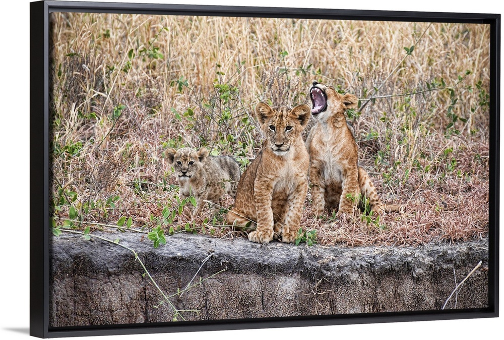 <p>Several lion cubs, one yawning. Serengeti, Tanzania, Africa</p>
