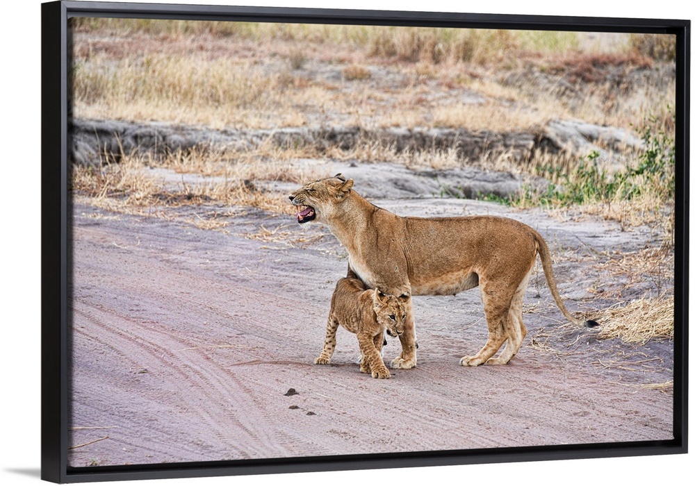 <p>A female lion and her cub</p>