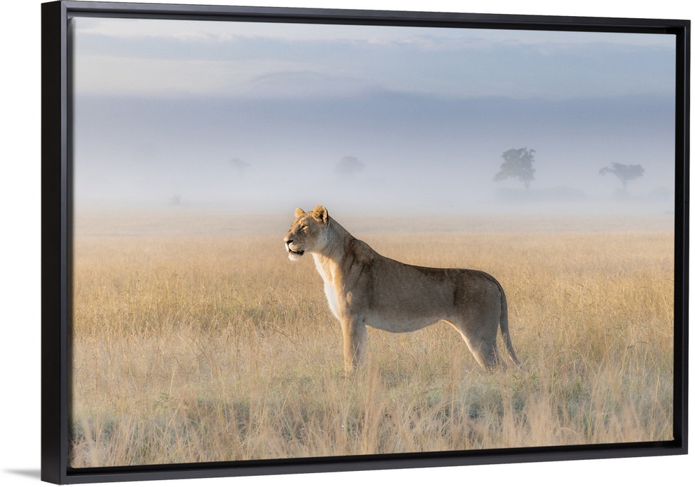 <p>Lioness in a misty sunrise in the Masaimara, Kenya</p>
