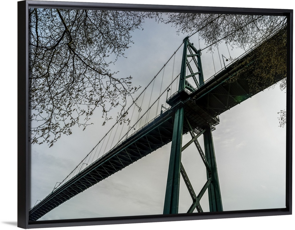 <p>Low angle view of Lions Gate Bridge, Stanley Park; Vancouver, British Columbia, Canada</p>