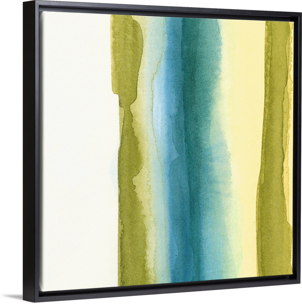 <p>Watercolor painting of vertical stripes of muted washed out colors that are bleeding together.</p>