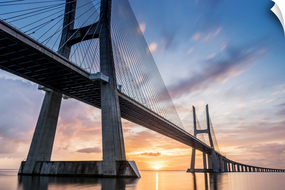 <p>Lisbon, Portugal. Vasco Da Gama bridge at sunrise, the longest bridge in Europe.</p>
