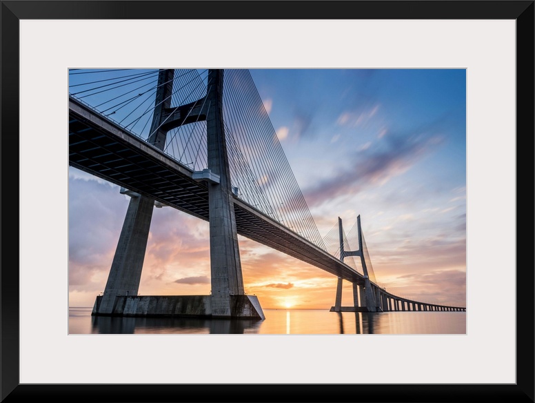 <p>Lisbon, Portugal. Vasco Da Gama bridge at sunrise, the longest bridge in Europe.</p>