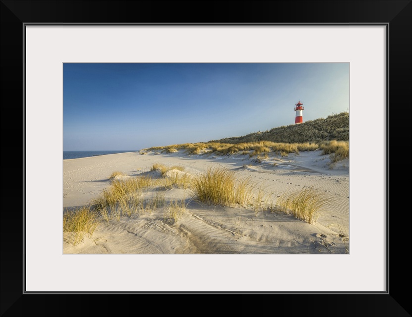 <p>List-Ost lighthouse and beach on the Ellenbogen Peninsula, Sylt, Schleswig-Holstein, Germany.</p>