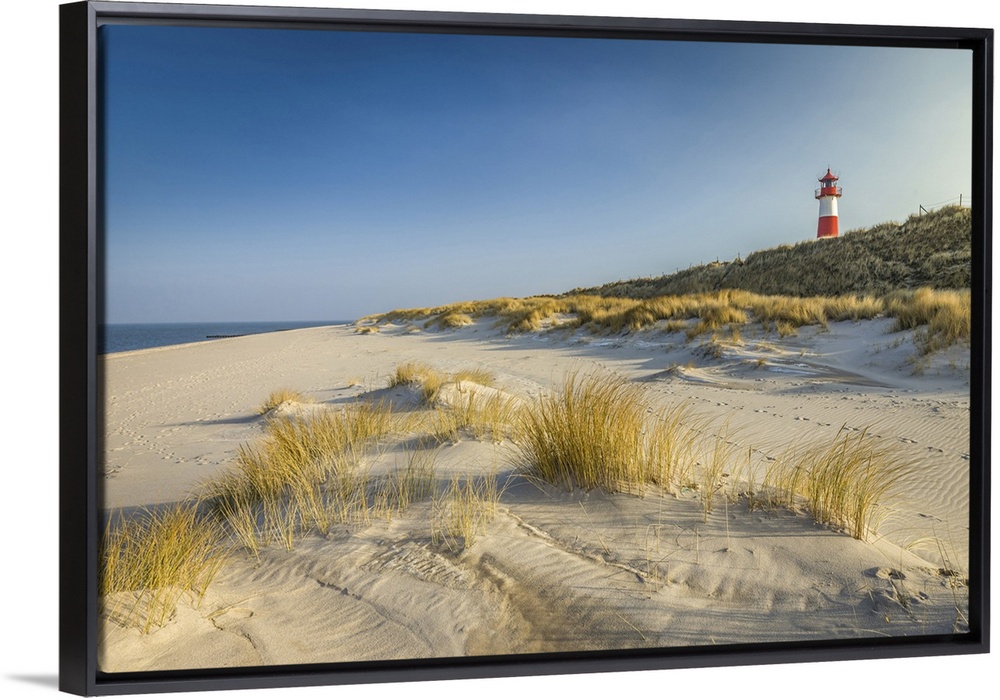 <p>List-Ost lighthouse and beach on the Ellenbogen Peninsula, Sylt, Schleswig-Holstein, Germany.</p>