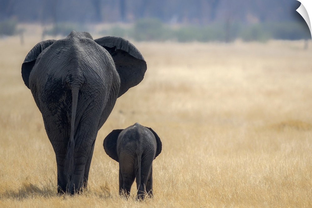 <p>Little and Large, elephant calf and mother, Hwange National Park, Zimbabwe, Africa</p>