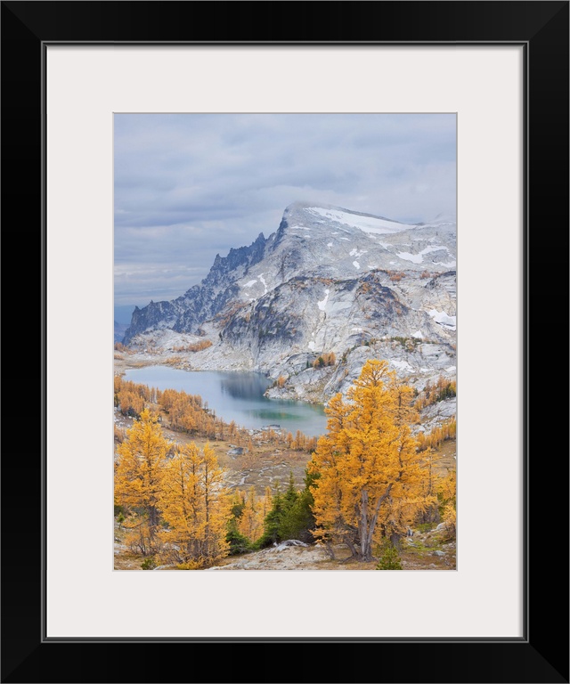 <p>Washington, Alpine Lakes Wilderness Enchantments. Little Annapurna, Perfection Lake and Golden Larches (Larix lyallii) of the Enchantments in the fall.</p>