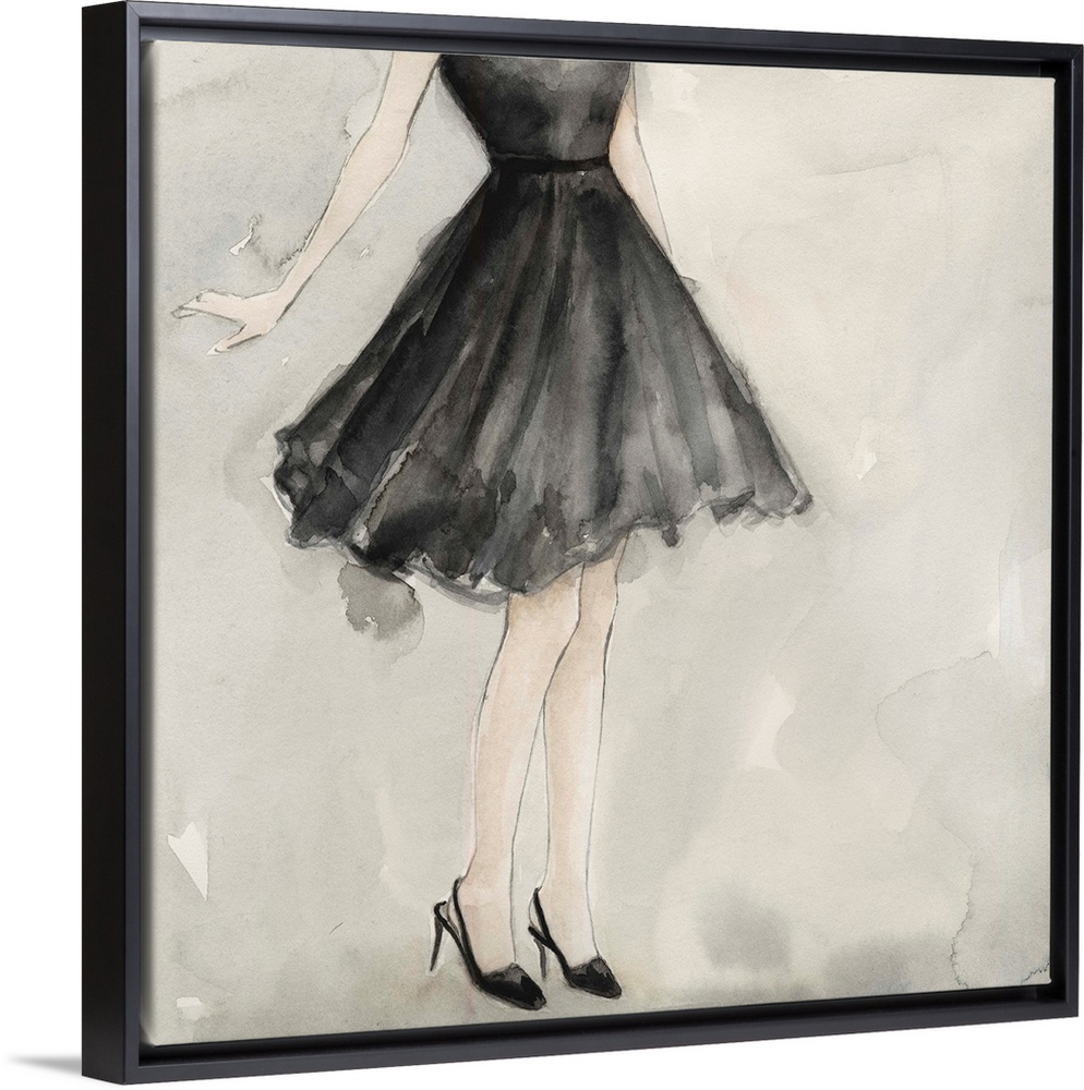 <p>Painting of a woman from the chest down wearing a black dress.</p>