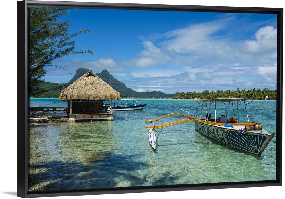 <p>Little boat anchoring on a small Motu, Bora Bora, Society Islands, French Polynesia</p>