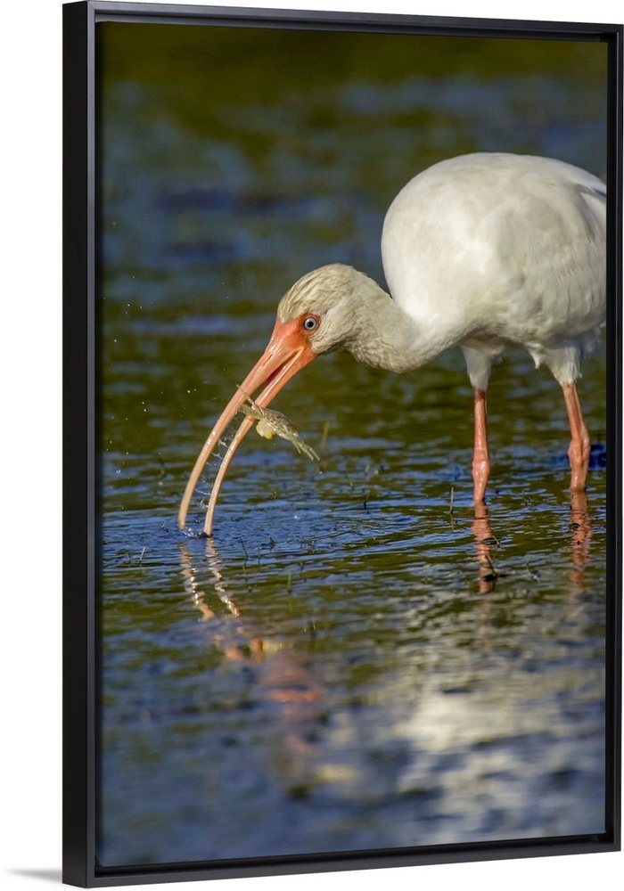 <p>USA, North America, Florida. Little Estero Lagoon, Fort Myers Beach, Florida, USA, White Ibis Eating A Female, Egg-Bearing, Blue Crab.</p>