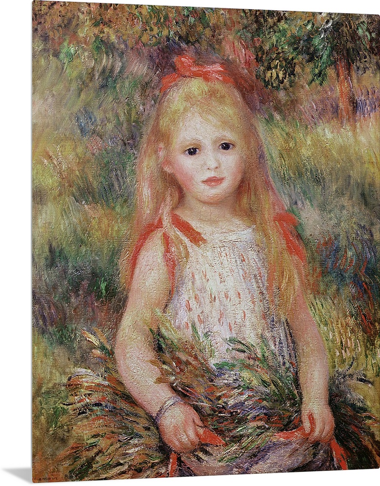 <p>XIR72601 Little Girl Carrying Flowers, or The Little Gleaner, 1888 (oil on canvas); by Renoir, Pierre Auguste (1841-1919); 66x54 cm; Museu de Arte, Sao Paulo, Brazil; Giraudon; French, out of copyright</p>