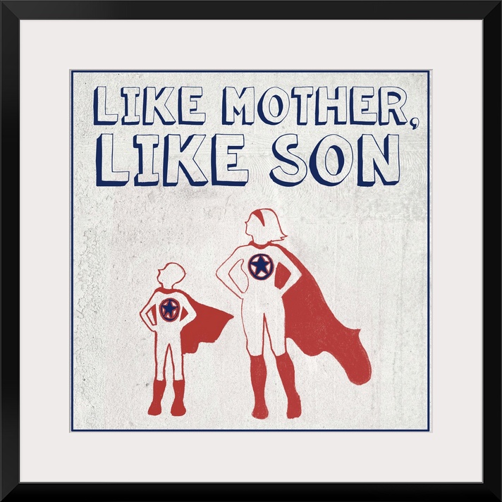 <p>Cute artwork of a boy and his mother dressed like superheroes.</p>