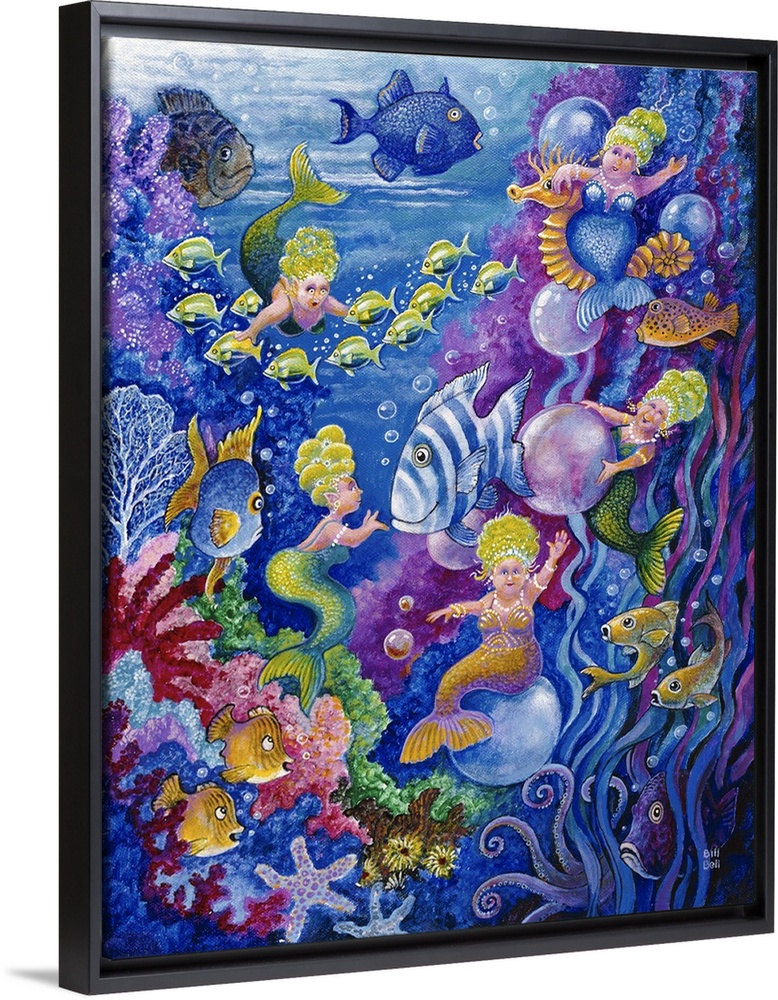 Art Bill Bell Blue Wall Art Contemporary Art Fantasy Mermaids Painting Wildlife Marine Life Fish