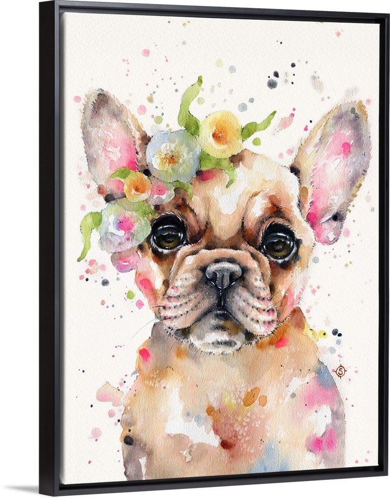 Art Children's Art Wildlife Decorative Art Painting Sillier than Sally Watercolor Wildlife Dog French Bulldog Puppy