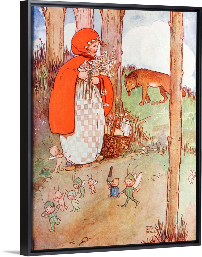 <p>Little Red Riding Hood in the forest. Early 20th century childrens' book illustration by Mabel Lucie Attwell.</p>