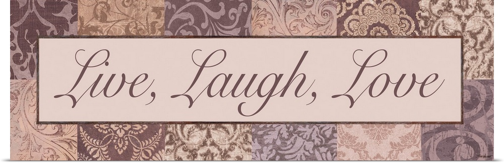 <p>"Live, Laugh, Love"in shades of pink and purple</p>