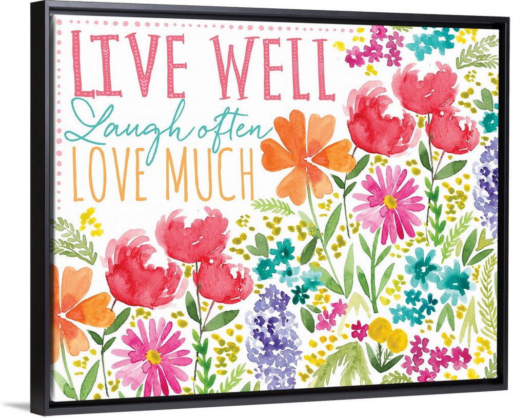 <p>"Live well, Laugh often, Love much" surrounded by watercolor flowers.</p>