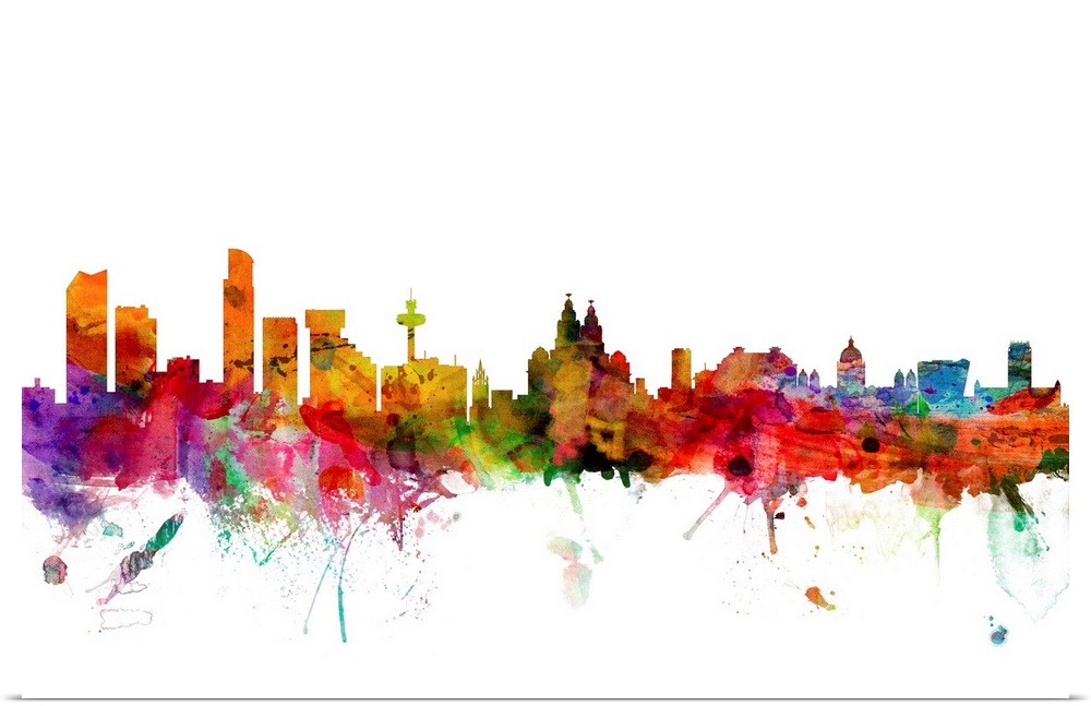 <p>Contemporary piece of artwork of the Liverpool skyline made of colorful paint splashes.</p>