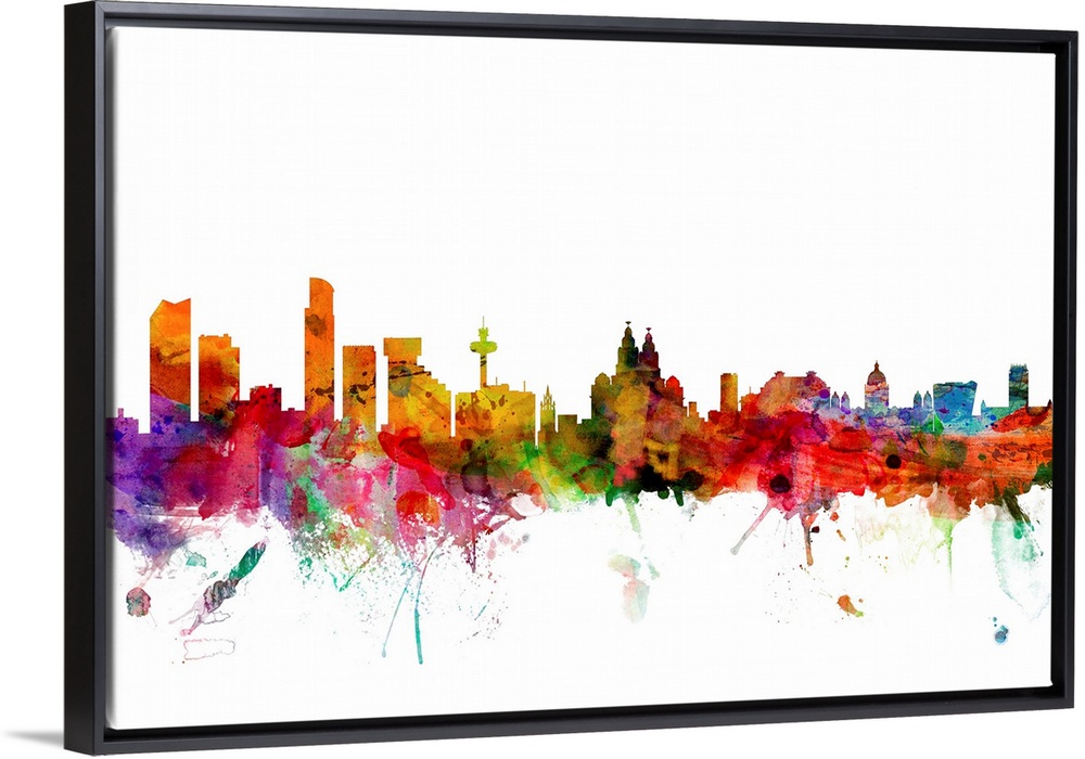 <p>Contemporary piece of artwork of the Liverpool skyline made of colorful paint splashes.</p>