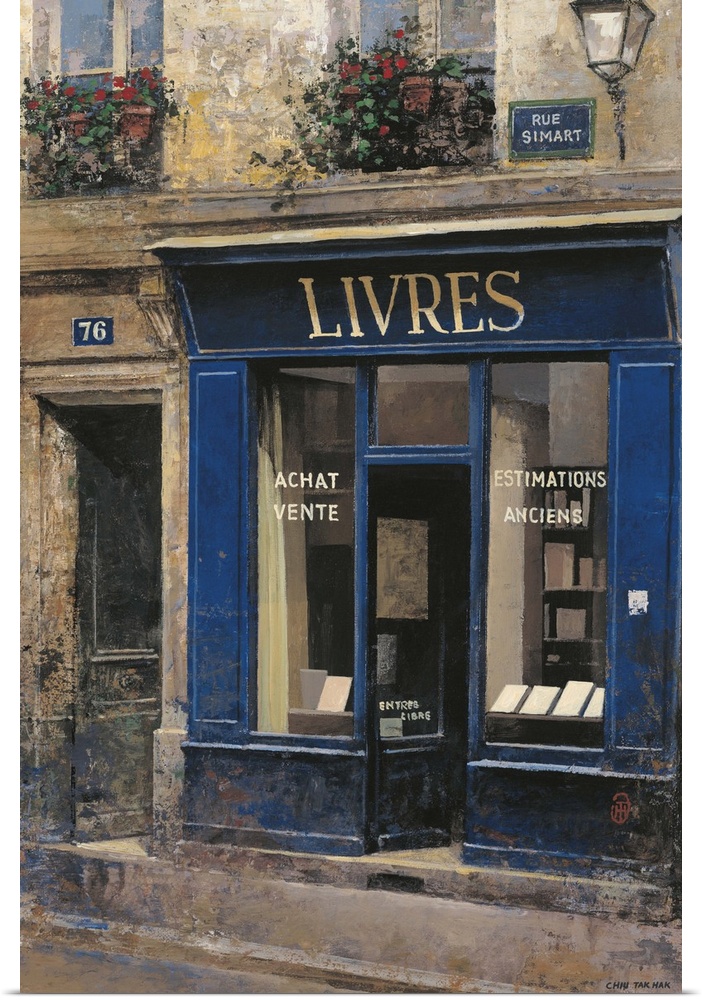 <p>Contemporary painting of a Bookstore storefront downtown in a city.</p>