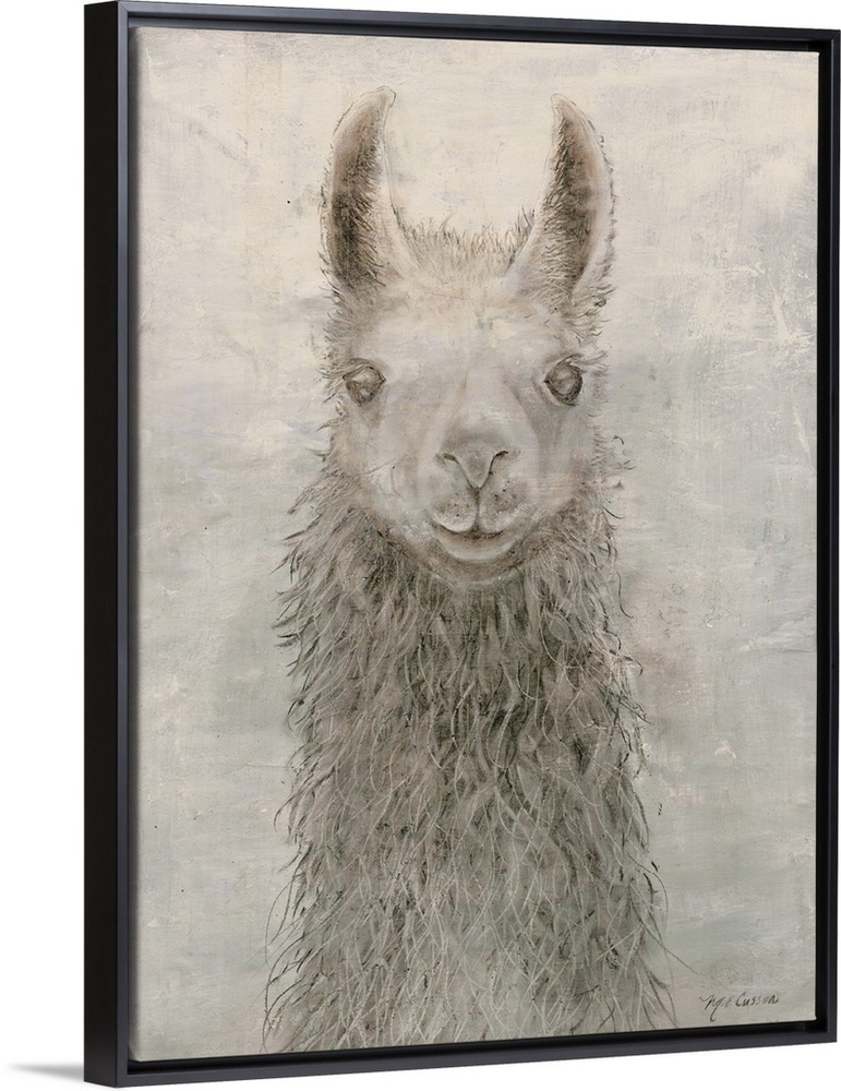 <p>A portrait of a llama in subdue shades of gray.</p>