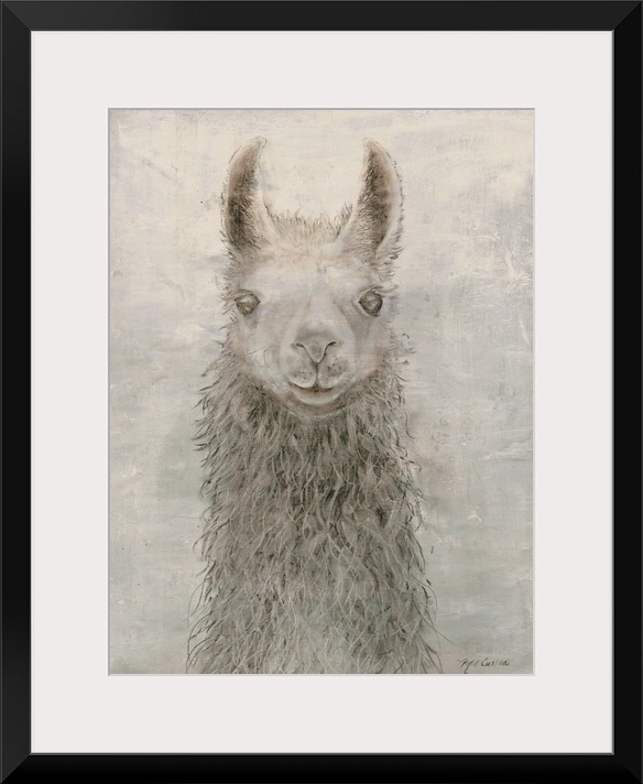 Art Marie-Elaine Cusson Decorative Art Grey Wall Art Painting Watercolor Wildlife Llama and Alpaca