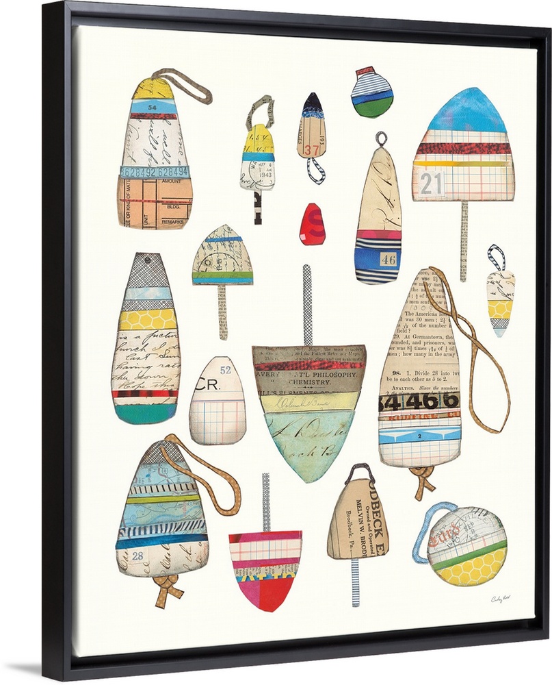 <p>Fishing buoys made with mixed media on a white background.</p>