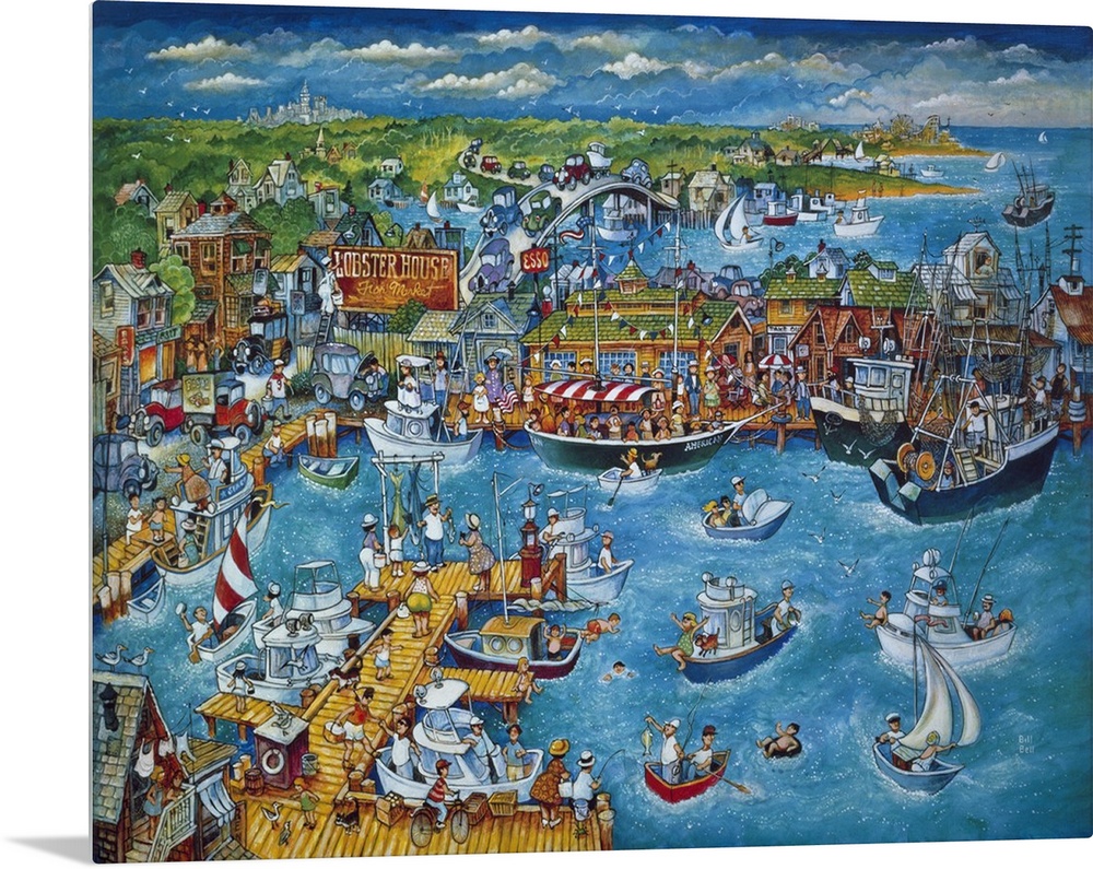Art Bill Bell Blue Wall Art Contemporary Art Landscapes Harbor Painting Transportation Boat