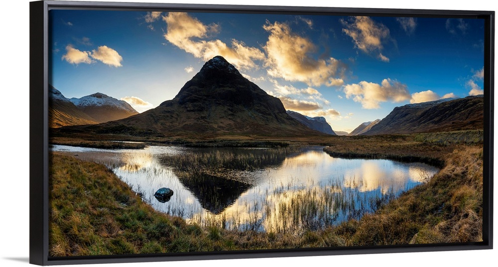 <p>Lochan Na Fola Reflections Of Buachaille Etive Beag At Sunset, Glen Coe, Highland Region, Scotland</p>