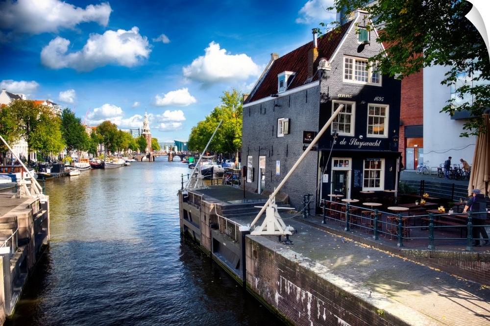 <p>Small, crooked Lockhouse Restaurant, Cafe de Sluyswacht, Amsterdam, Netherlands.</p>