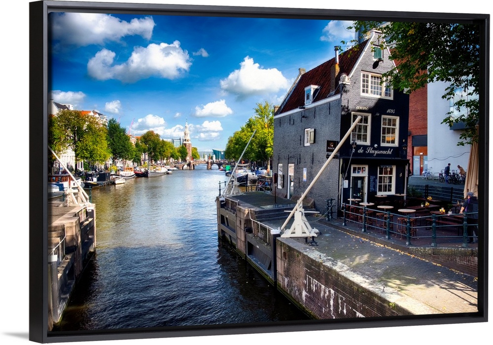 <p>Small, crooked Lockhouse Restaurant, Cafe de Sluyswacht, Amsterdam, Netherlands.</p>