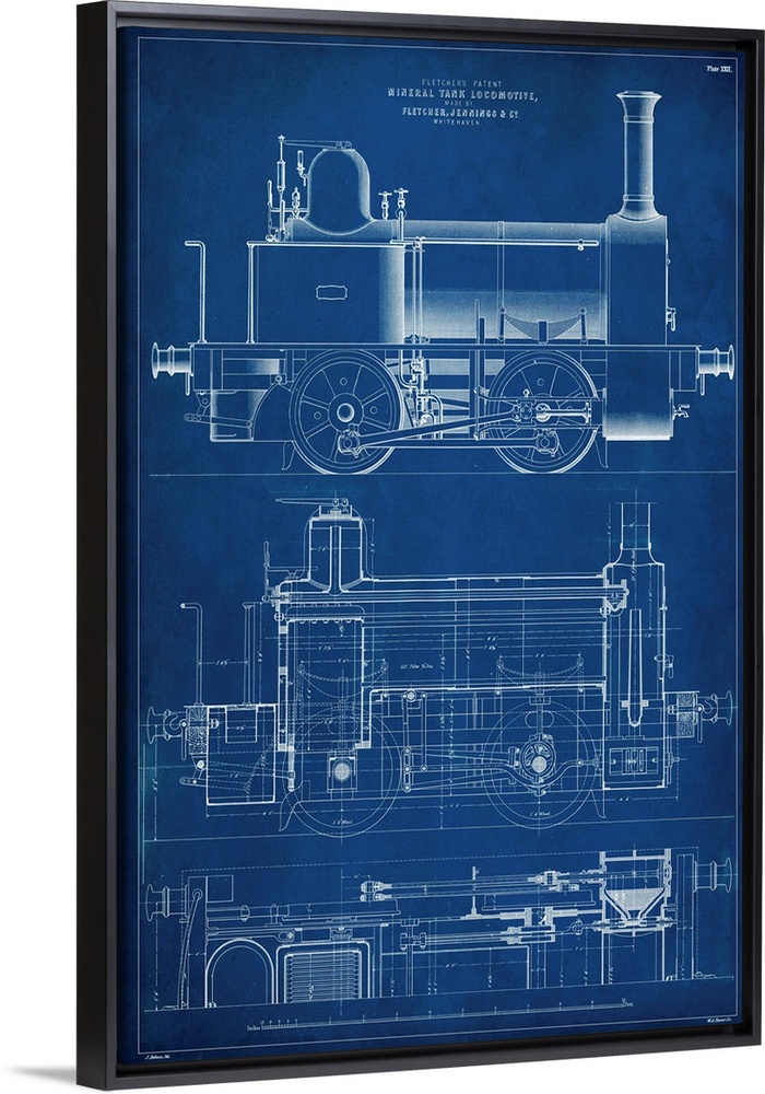 Art Blueprints Blue Wall Art Decorative Art Drawing Vision Studio Transportation Train