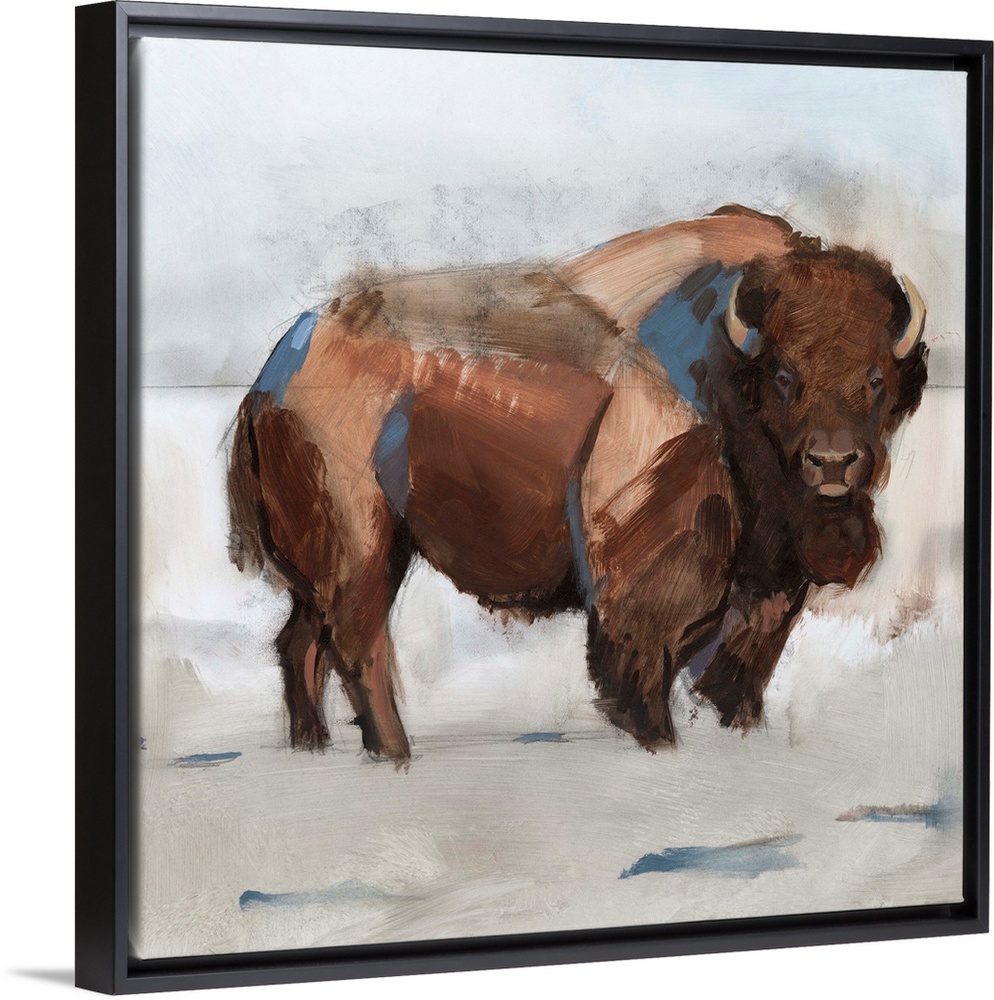 Art Rustic Rustic Traditionalist Decorative Art Jacob Green Painting Wildlife Bison and Buffalo