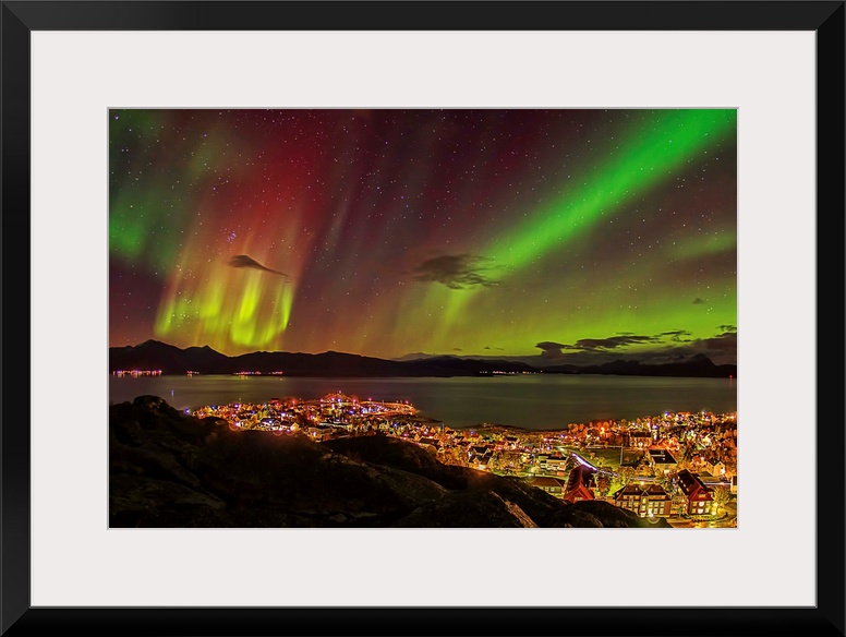 <p>Colorful northern lights over the village of Lodingen in Nordland, Norway.</p>