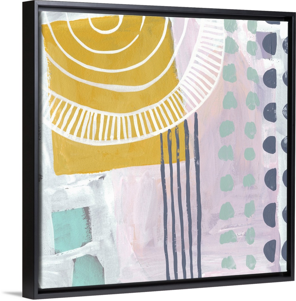 <p>Fun, contemporary abstract painting with geometric forms and lines in a vareity of bright and pastel shades.</p>