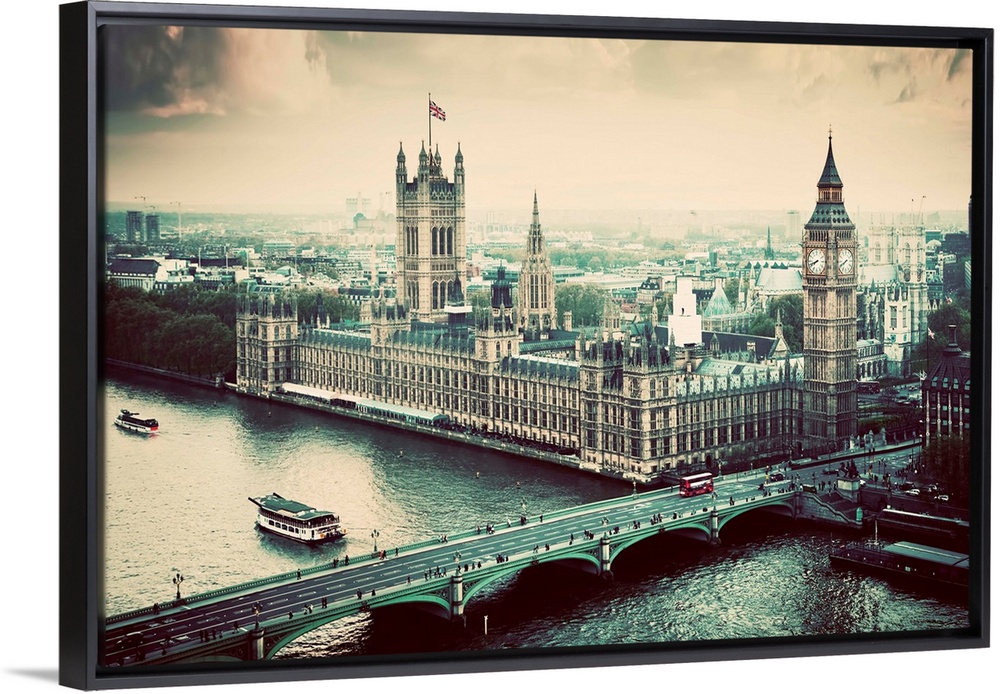 <p>London, Big Ben, the Palace of Westminster in vintage, retro style. View from the London Eye</p>