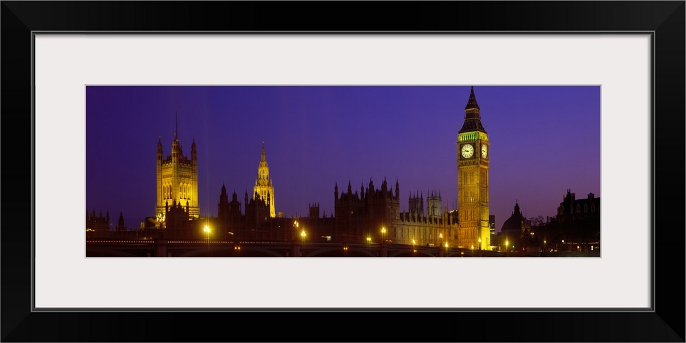 <p>London Skyline at night, Thames river in foreground also pictured Big Ben, Halls of Parliament, Westminster Palace and the Millennium Wheel</p>