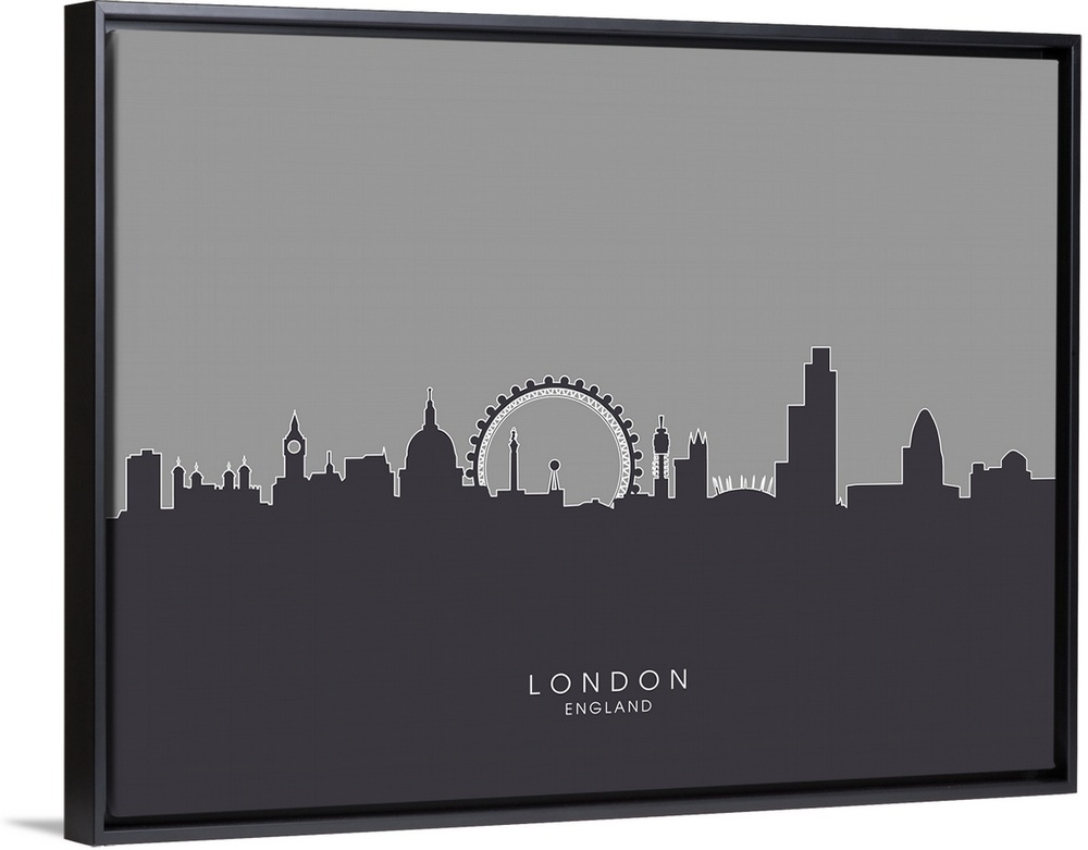 <p>Contemporary artwork of the London skyline silhouetted in dark gray.</p>
