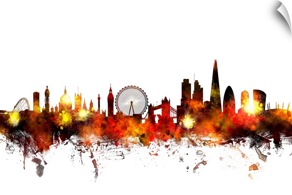 <p>Contemporary piece of artwork of the London skyline made of colorful paint splashes.</p>