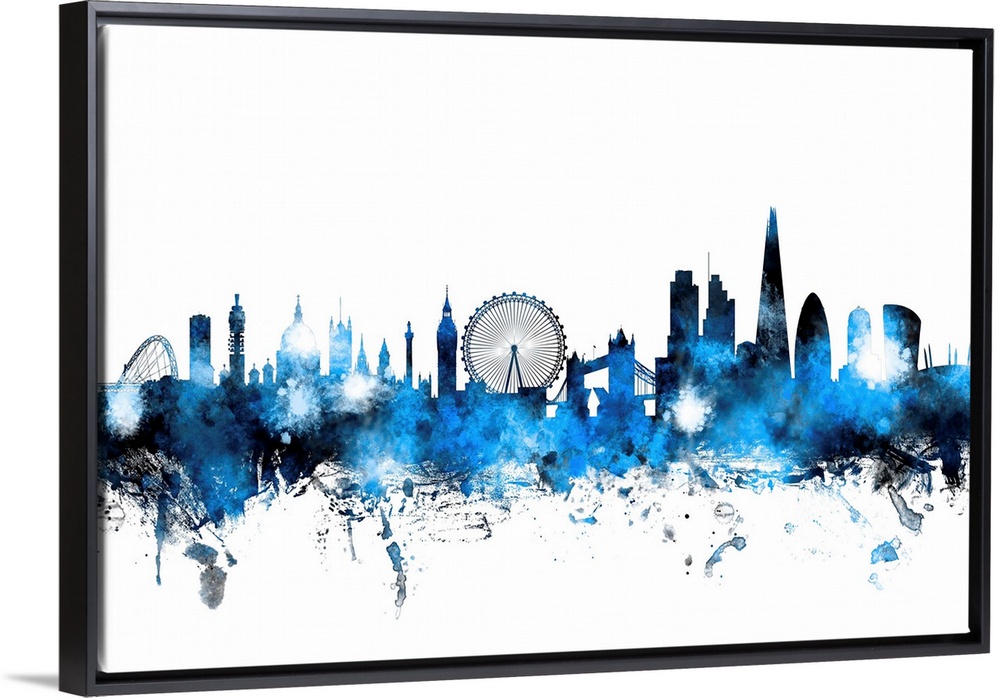 <p>Contemporary piece of artwork of the London skyline made of colorful paint splashes.</p>