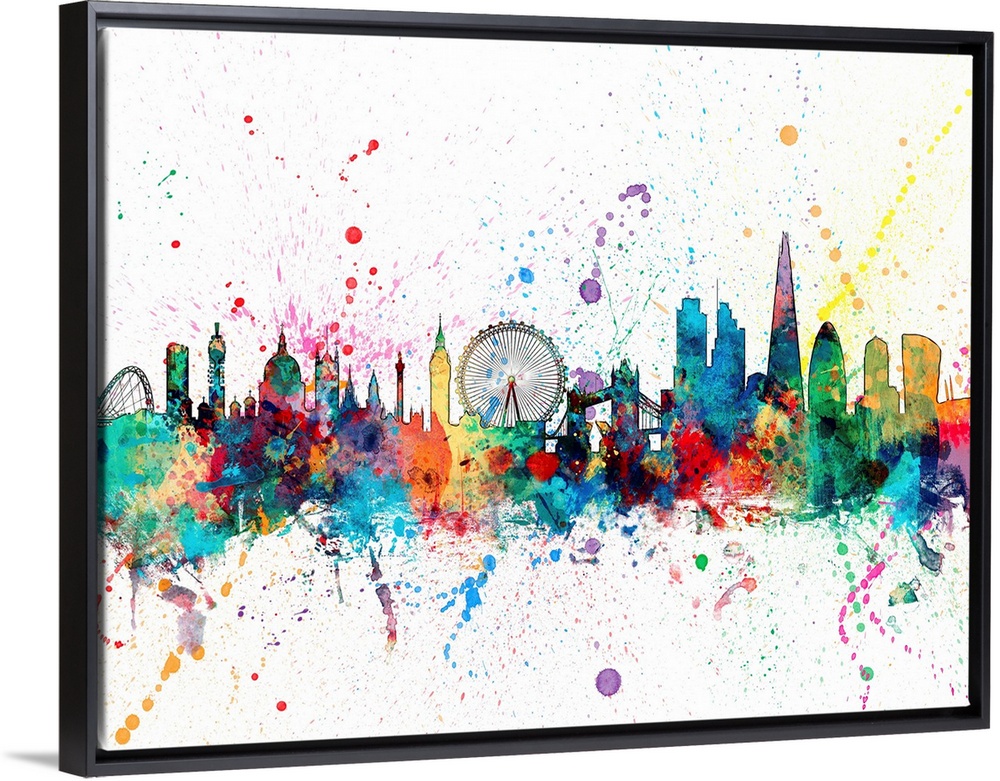 <p>Wild and vibrant paint splatter silhouette of the London skyline.</p>