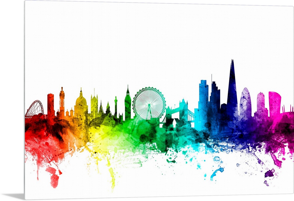 <p>Watercolor art print of the skyline of the City of London, England.</p>